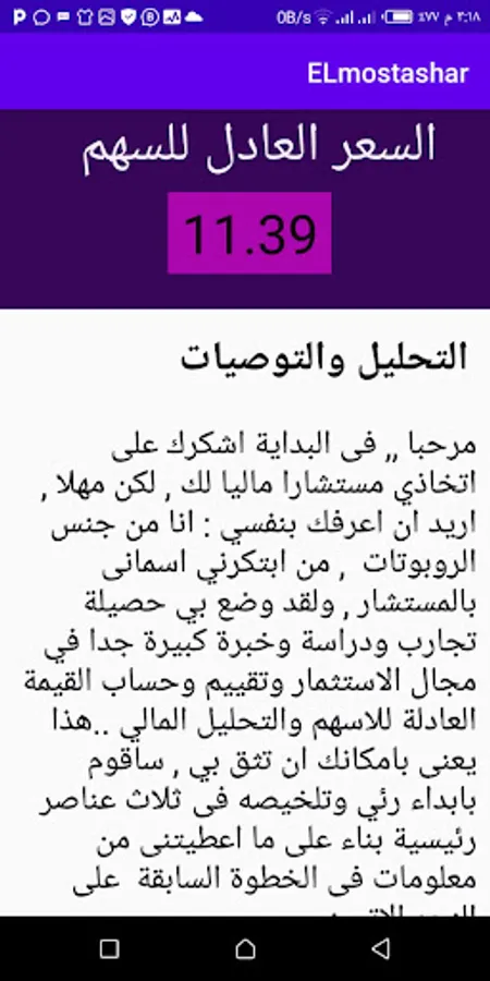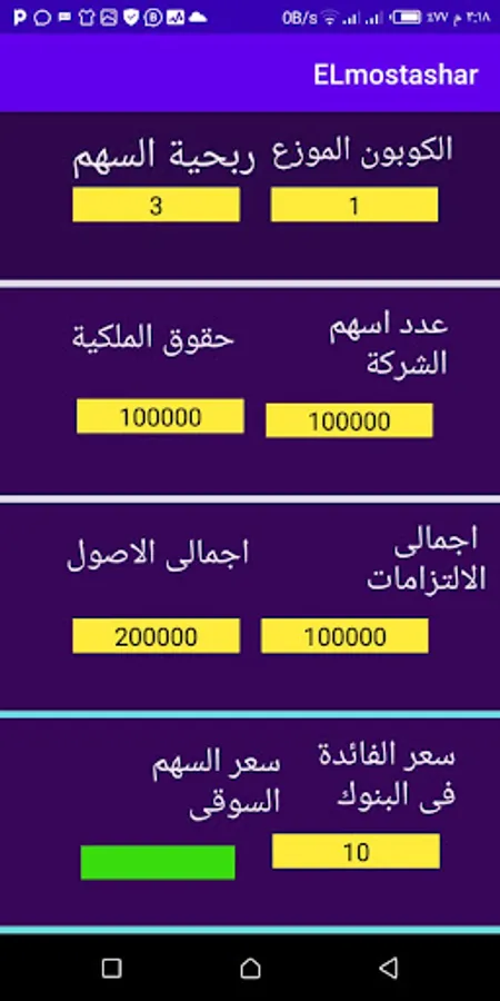 The program will calculate the fair value of the share and give some textual analysis, based on what has been developed from the outcome of experiments, study and expertise in the field of investing in shares