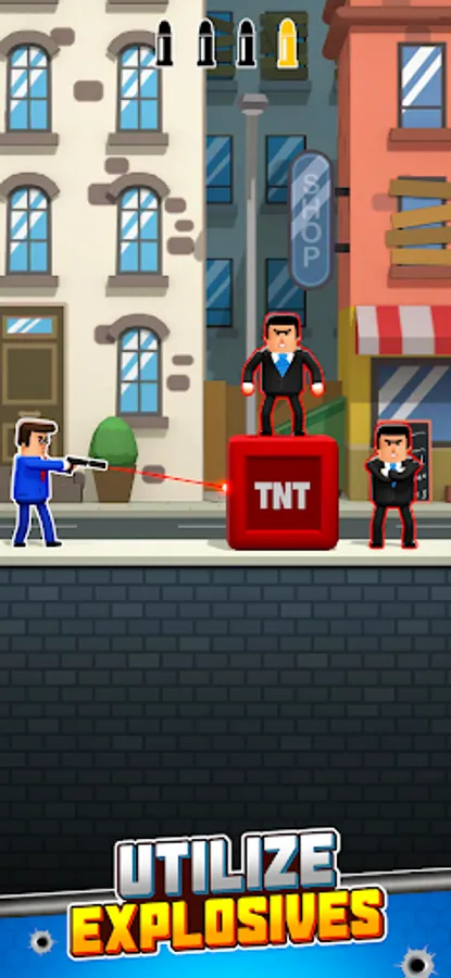 MR Bullet 3D is an excellent opportunity to feel like a super-agent and try the action. Whether you are a fighter or a puzzler, don't miss your chance to become a legend and complete secret missions. It is your time to clear the world from notorious villains and make it a better place for others. Try yourself in accuracy, speed, and patience!