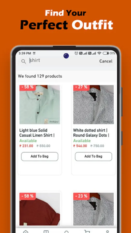 After installing OneByZero shopping application, you can either login using OTP or skip this step to login later. Here you will find the available products to try from (Only men's products are available now. Women & Kids sections will be added soon).