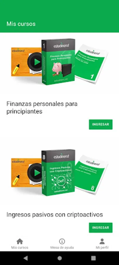 App to access all Estudinero online coaching courses and spaces