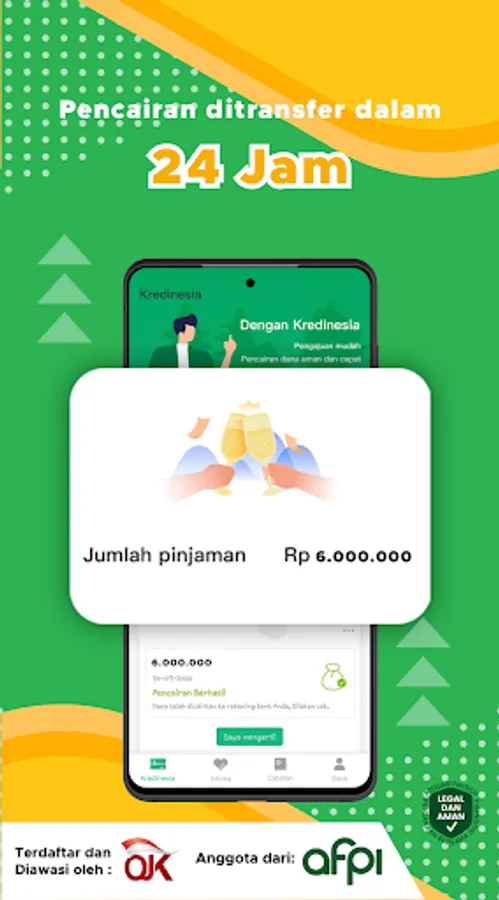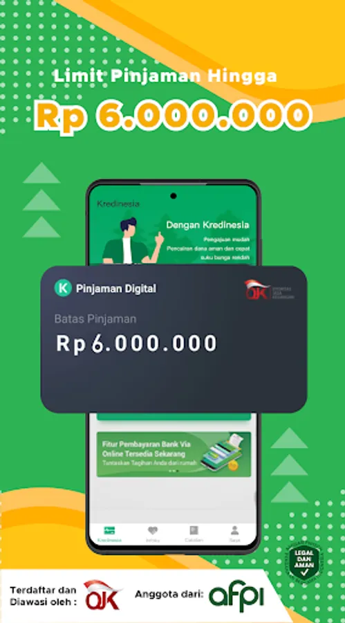 Kredinesia is a collateral-free loan platform that provides flexible and reliable loans with a credit limit of up to IDR 6,000,000, a platform that really helps you when you have an urgent need. Kredinesia is officially registered and supervised by OJK, so you can use it safely without any doubts.