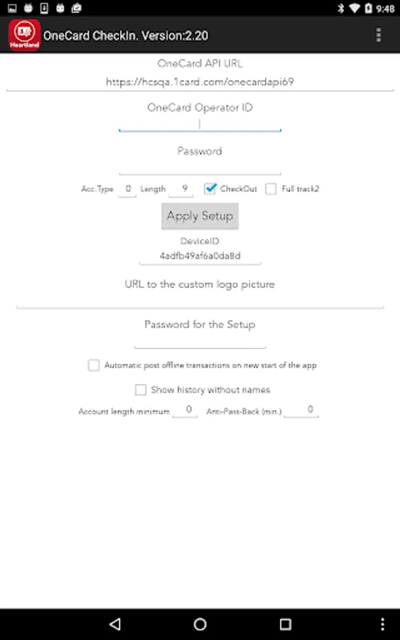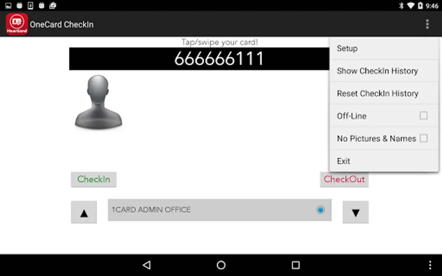 OneCard CheckIn is a part of the Campus OneCard System provided by Heartland Campus Solutions. The OneCard CheckIn app combines the versatility and flexibility of Android devices with the power of the Heartland Campus OneCard System to provide enhanced OneCard access transactions. This app allows the user to request the Campus OneCard access transaction - such as activity privilege on Android devices via WiFi or mobile broadband.