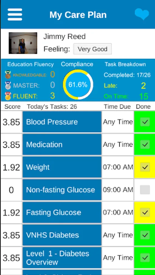When you complete a task for the day, you are awarded a score for that task based on if you completed it on time or not. We will send you a reminder via text or email if a task is coming up, depending if you are signed up to receive them.