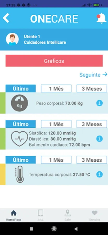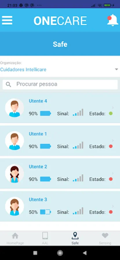 The OneCare application is an application available for monitoring elderly people, having been conceived and designed according to the needs of caregivers and social response entities.