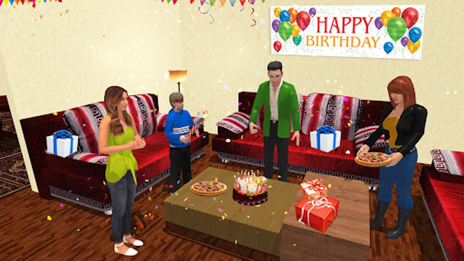 Drive your sports car in driving games and enjoy the long drive with your lovely wife in mom simulator games. Buy a beautiful necklace for your wife and surprise her while playing the new virtual families simulator. Visit the bakery to buy a birthday cake in rich dad games. Order a delicious pizza for a surprise birthday party in the mother games. Amazing happy family adventure with smooth controls and amazing graphics that will give you more adventure in daddy games.