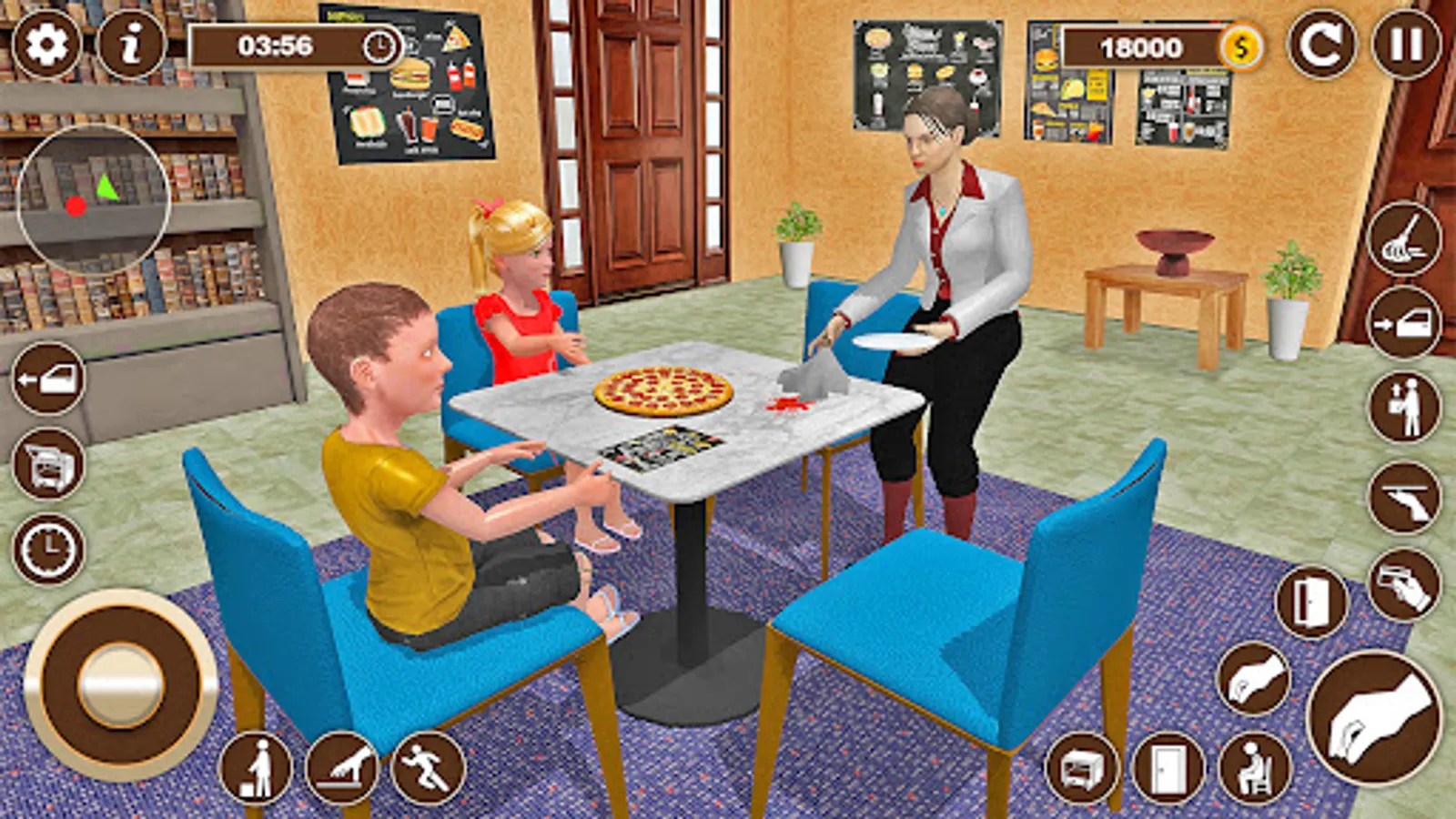 Hotel waiter Job Simulator is all about the professional waitress in her new job as the virtual waiter in the 3D hotel games. Help the virtual mom and virtual dad to choose the best meal for their kids in this hotel manager games. Collect the objects from the messy tables and perform cleaning tasks perfectly to be the best virtual manager of a 5-star restaurant games. Guide the hotel staff to cleaning daily in the hotel to keep it neat and clean for the VIP guests in this hotel manager waiter job games.