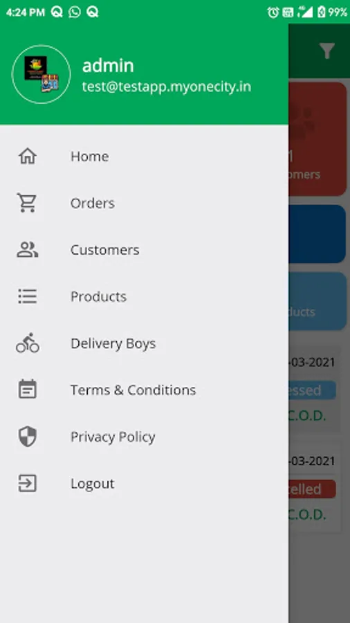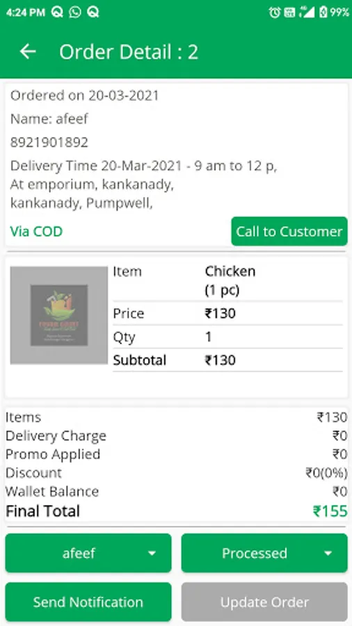 3) Delivery boy app - where the delivery app gets notification about the orders.