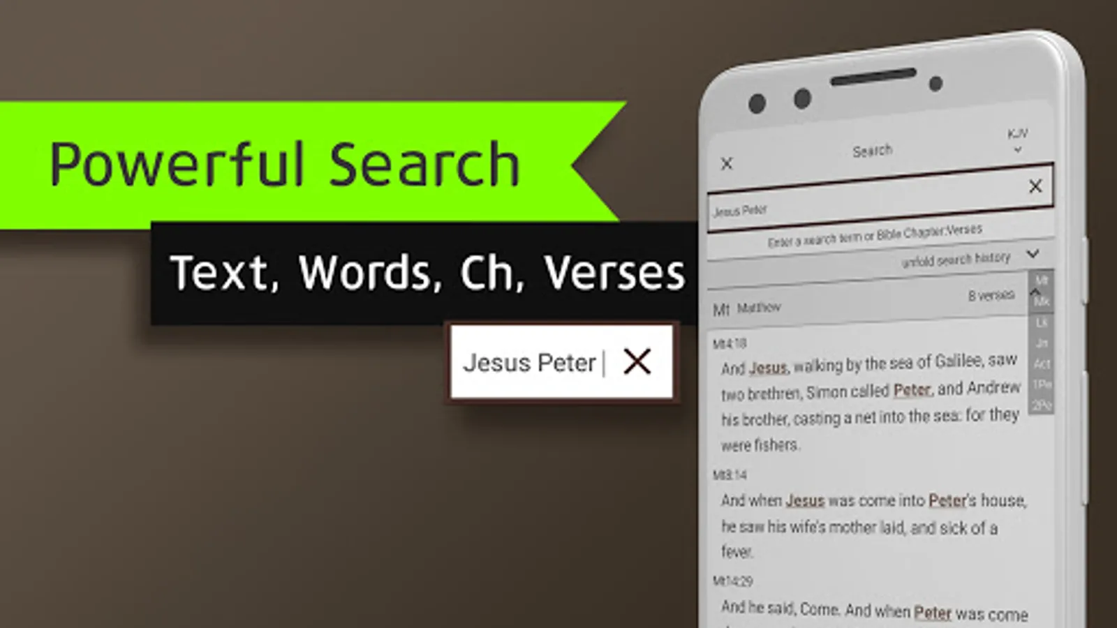 Smart Holy Bible help you find KJV Bible words separately everywhere in verses whether front or back with or without spaces.