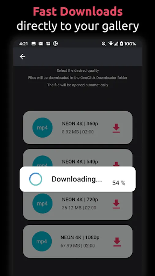OneClick Video Downloader Pro supports fast downloads, no bandwidth limit, no waste of your data, download only what you need.