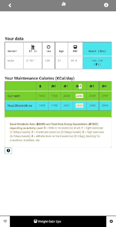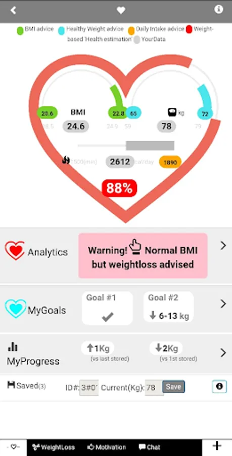 2) NEW feature: Calculates daily calorie intake recommendations and estimates your GENERAL HEALTH STATUS(weight-based)
