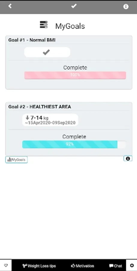 14) Task manager: keep updated about your weight progress, goals and %completion. In order to reach your healthy weight, two intuitive and easy to follow goals need to be completed: 1) Normal Weight; and 2) your Healthiest Area. Once you reach the last one, your only goal will be to maintain a healthy weight forever. Our app will help you to achieve all these goals