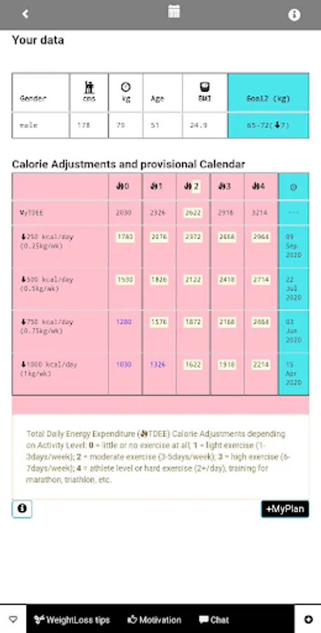 8) Estimate/predicts provisional dates to be fit and healthy if you decide to initiate any weight management or fitness program