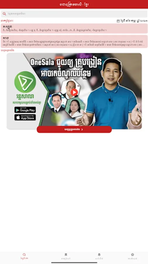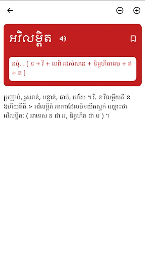 This digital Pāli-Khmer dictionary contains all the original contents of the Dhamma Pada Dictionary of Contemporary Khmer compiled by Preahgrūsirisobhana Kim Tor, first published in 1950.