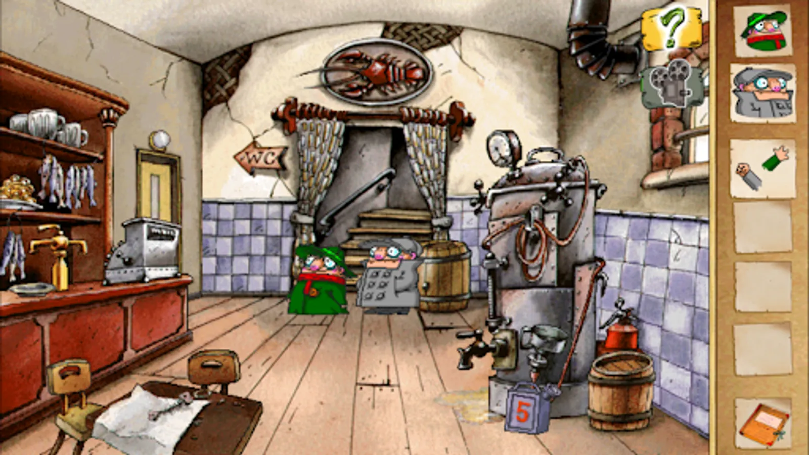 The Pilot Brothers’ cat Arsenic has been kidnapped by Experimental Chef Sumo! Now the famed duo must track down Arsenic before he’s served with French fries. Per usual, this madcap detective adventure won’t be without its twists and turns, as the brothers must start by constructing a composite of the catnapper’s face with the help of a witness. Before long they’ll be slipping past ticket collectors at the railway station, driving a railroad handcar and chasing a train carrying Sumo and Arsenic. Help the Pilot Brothers cross the river – without a bridge – and solve numerous challenging puzzles to save Arsenic in this heart-pounding quest!