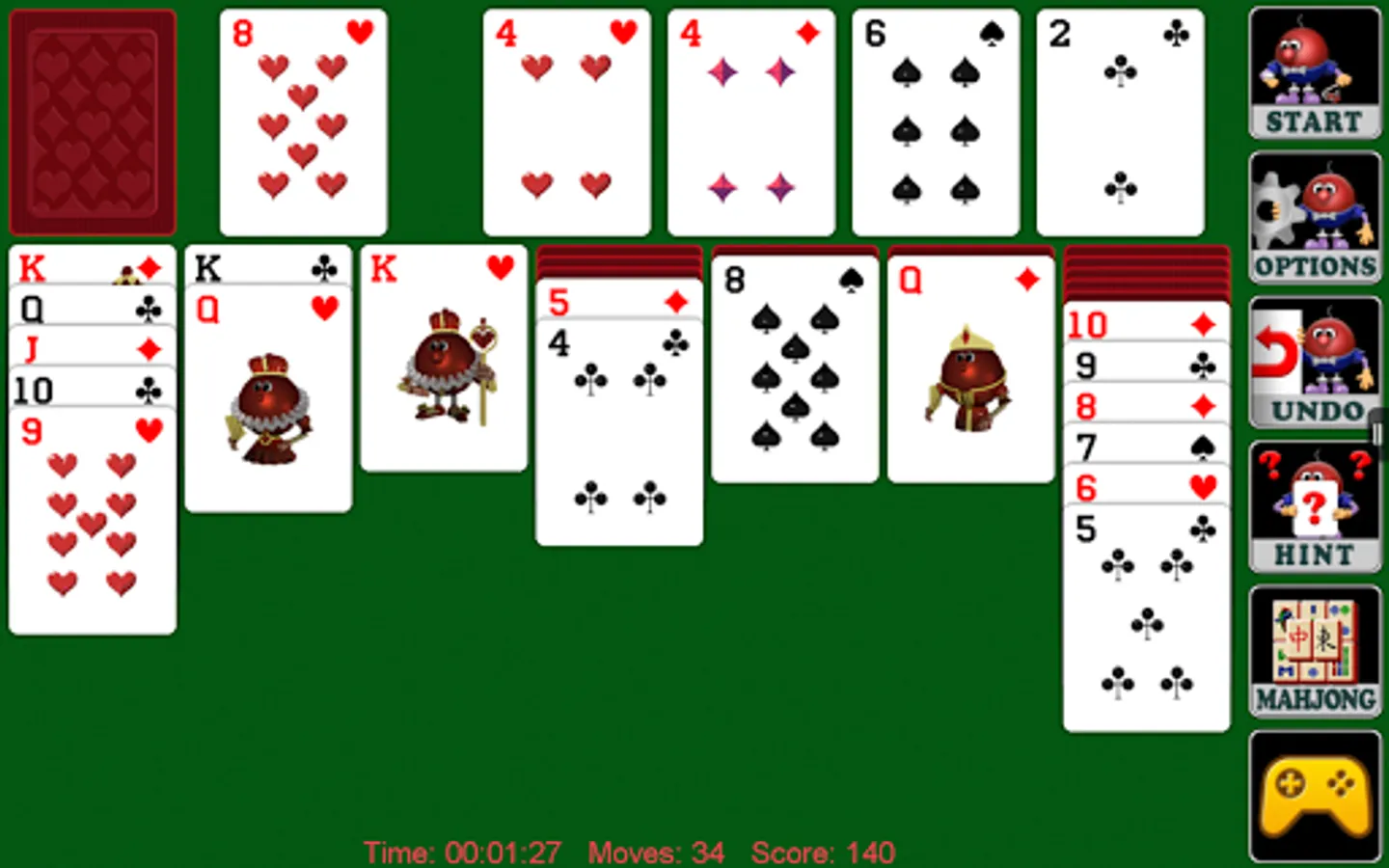 Your goal is to group the cards (in 4 upper cells) according to their suites from aces till kings. Piles are built alternating red and black colors in sequence. Solitaire is also known as Klondike solitary, Patience.