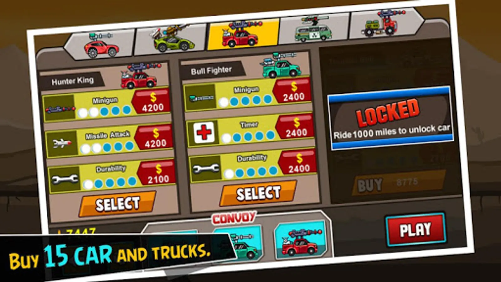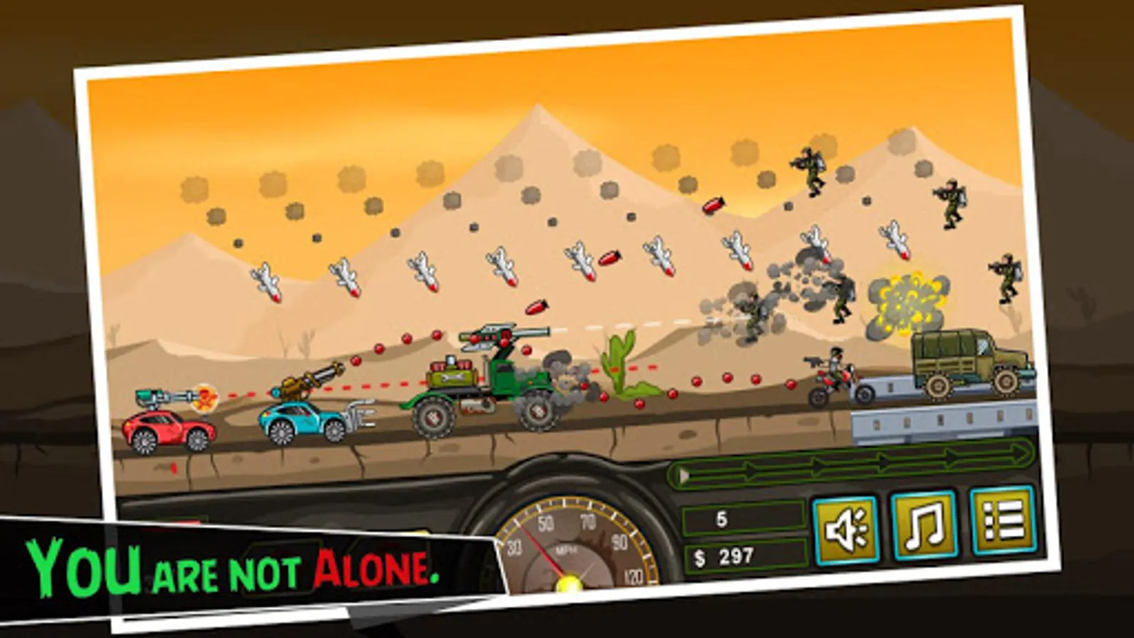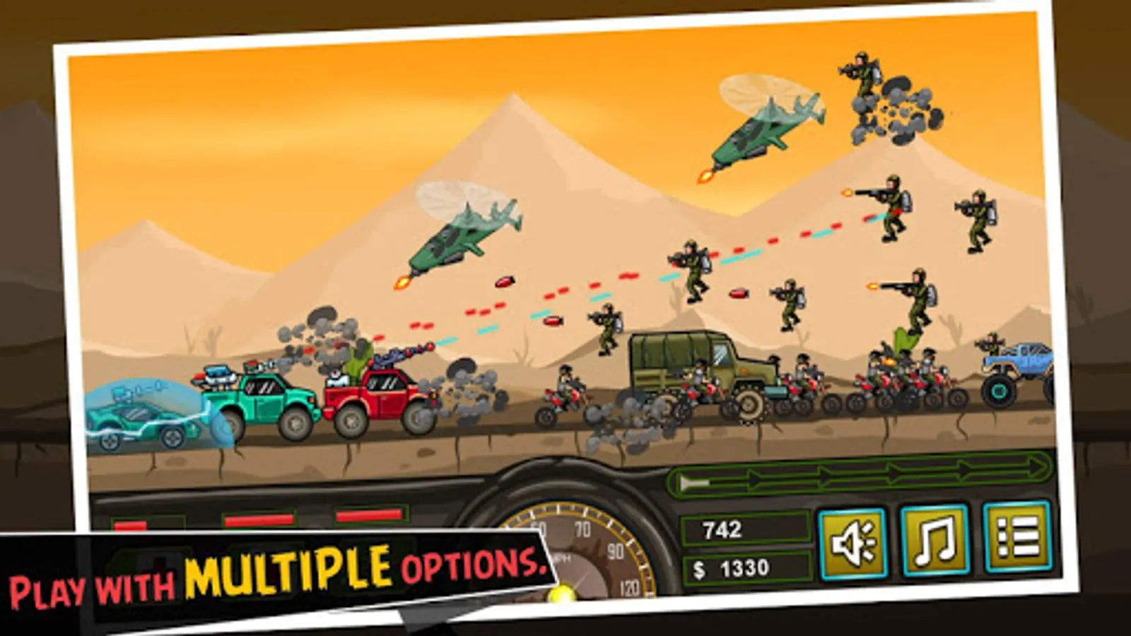 Defend your Car against on onslaught of bad guys with uzi's AK47'S Rocket Launchers and unlimited guns.