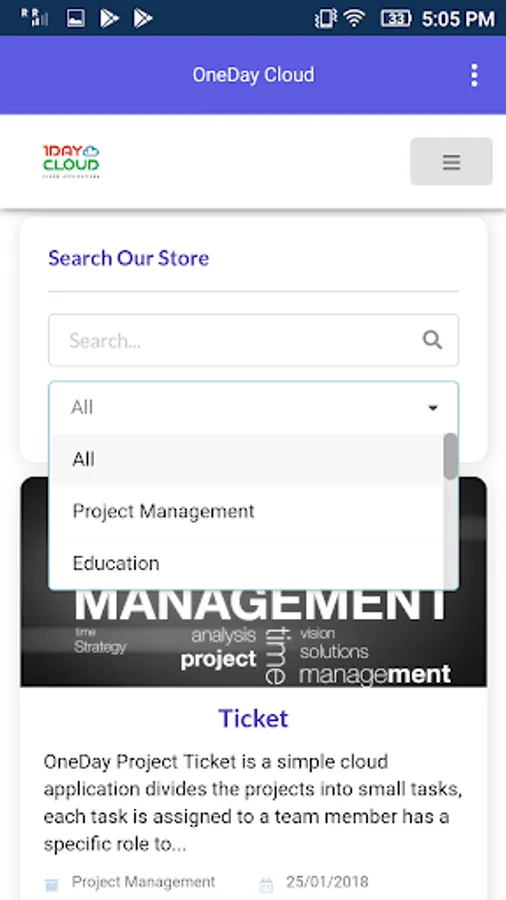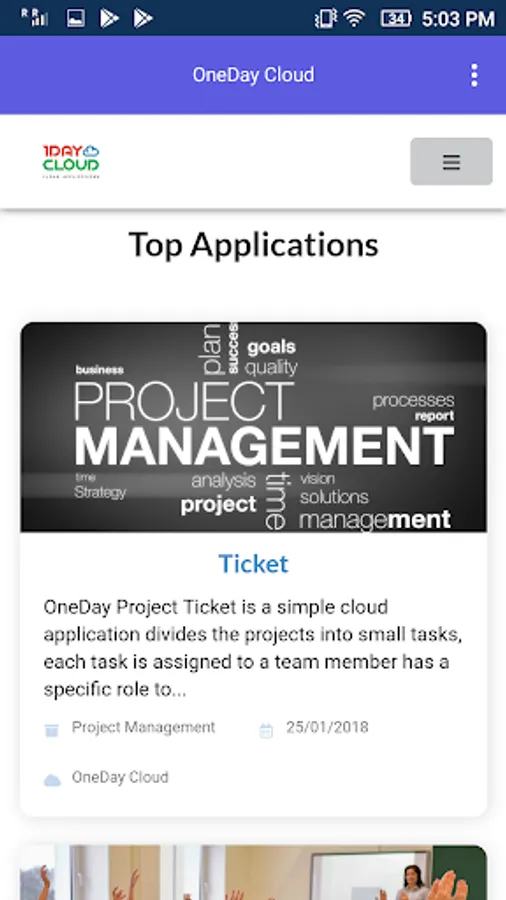 OneDay Cloud enables users to digitalize and transform daily processes into cloud applications by searching in OneDay Store the appropriate application they need, then they can run and customize the application anytime, anywhere without a need for software development.