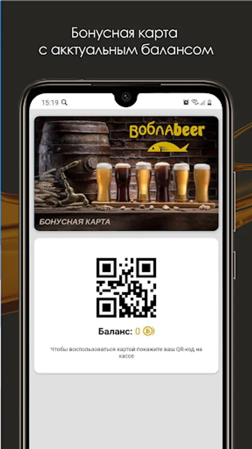 • Your bonus card Voblabeer and its current bonus balance. If you do not have a card yet, you can register it directly in the application.