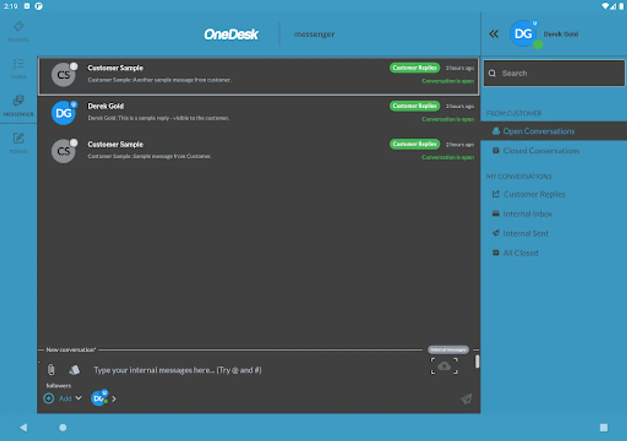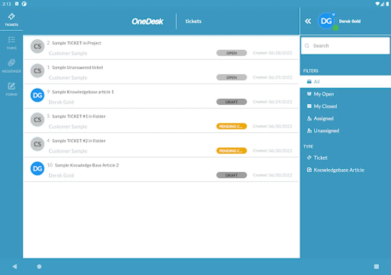 Deliver exceptional helpdesk support and manage your daily tasks on the go. The OneDesk mobile app is designed to connect you to your OneDesk account. Respond to customer tickets, update tasks, collaborate with your colleagues, and track or log time easily from your phone.