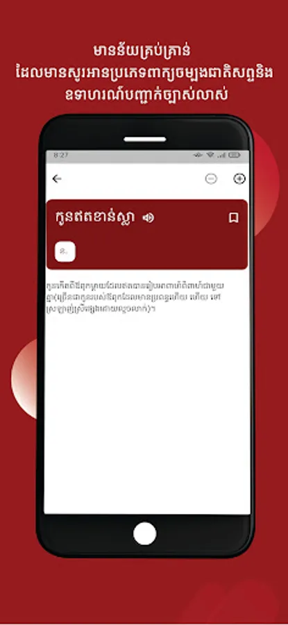 The Dictionary of Contemporary Khmer belongs to the working team to implement the project of updating the Khmer dictionary and is registered according to the relevant law. Therefore, any copying of all or part of it for the purpose of doing business or tampering with this work is considered illegal. Anyone who tampers with this work will be held liable under applicable law.