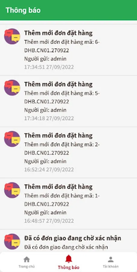 - Check if the order has been received by any delivery staff? If so, it will warn "Order has been confirmed by another staff" and at this time will not show the order on the list "Waiting for CONFIRMATION".