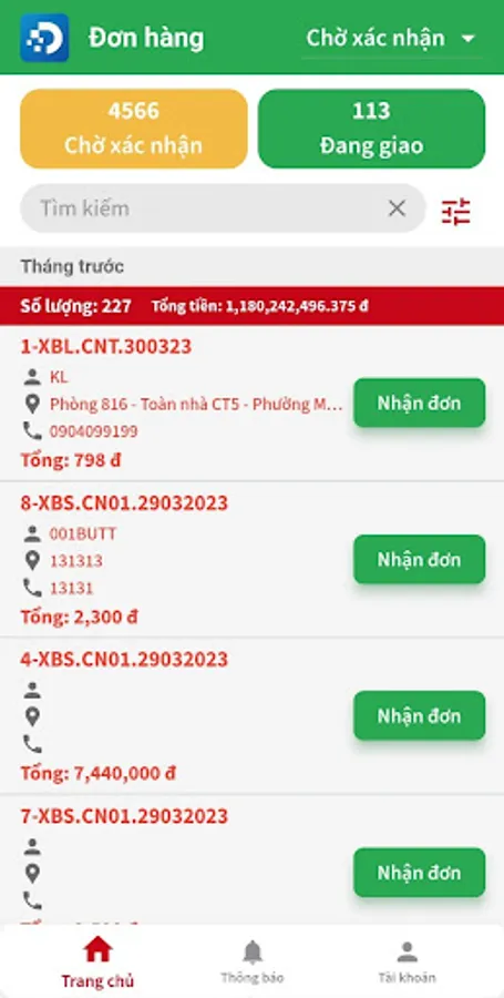 OneDMS Delivery application is a smart delivery application today, the system will send Notification notification messages to phones that have OneDMS Delivery installed, employees know the order will receive orders to deliver to customers. row.