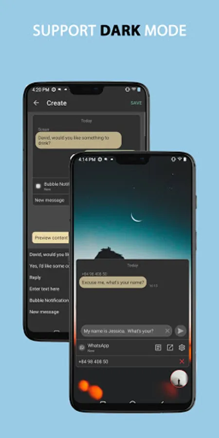 Bubble Notification provides nice features to manage your notifications and supports reply directly to notifications come from messenger applications.