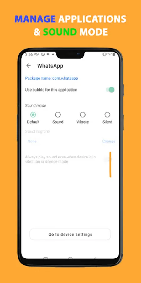 * Manage your applications or notifications individually, even support sound mode for individual notification