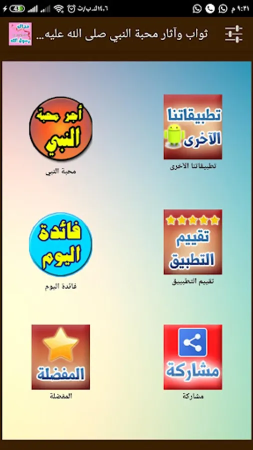 After your evaluation of our application, please enter "Today's Benefit" to activate the alert feature ... Do not forget to publish the application to your friends ... As the Messenger of God, may God bless him and grant him peace, said .. The signifier of goodness is like an actor