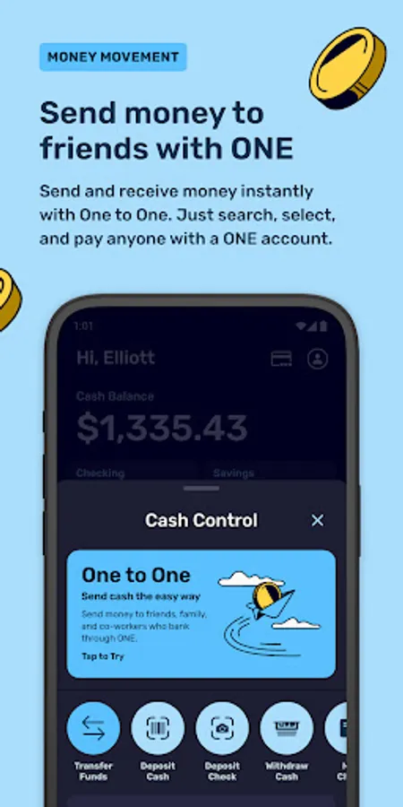 Send and receive money instantly with One to One. Just search, select, and pay anyone with a ONE account.