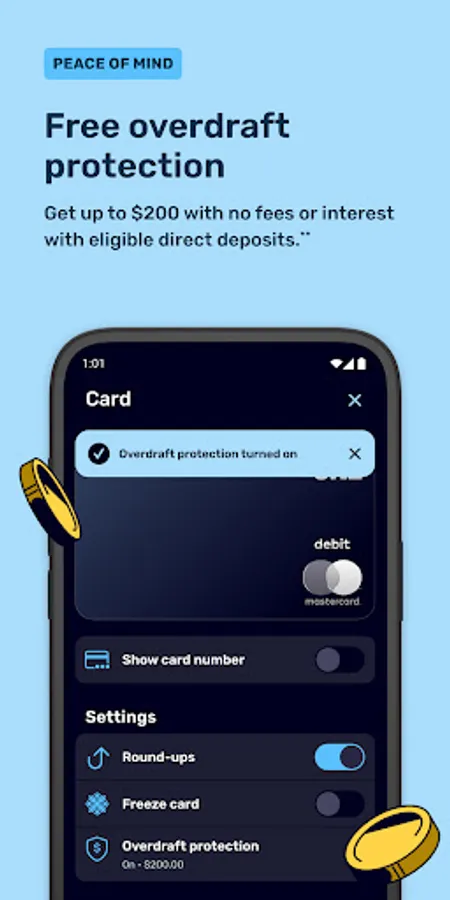 **With eligible direct deposits totaling at least $500 in the previous month. Must be 18 or older to receive overdraft protection. Overdraft balance is due right away. Transactions eligible for overdraft protection are determined by ONE.