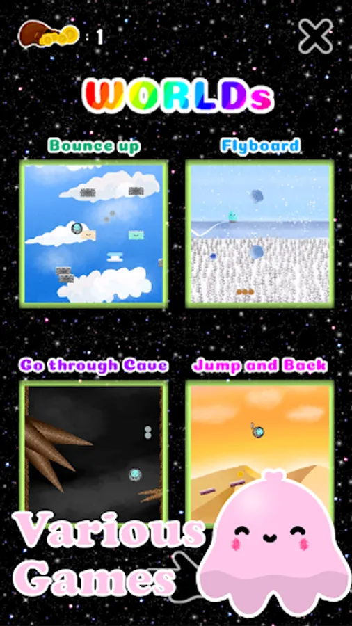Once upon a time, Jelliens lived peacefully and happily on a planet Jella. Then one day, an alien creature called Vector invade the planet. The technology of Vector was very advanced, and the Jelliens hit by Vector's laser guns lost their arms, legs and planet. Help Jelliens to get back their peaceful lives..!