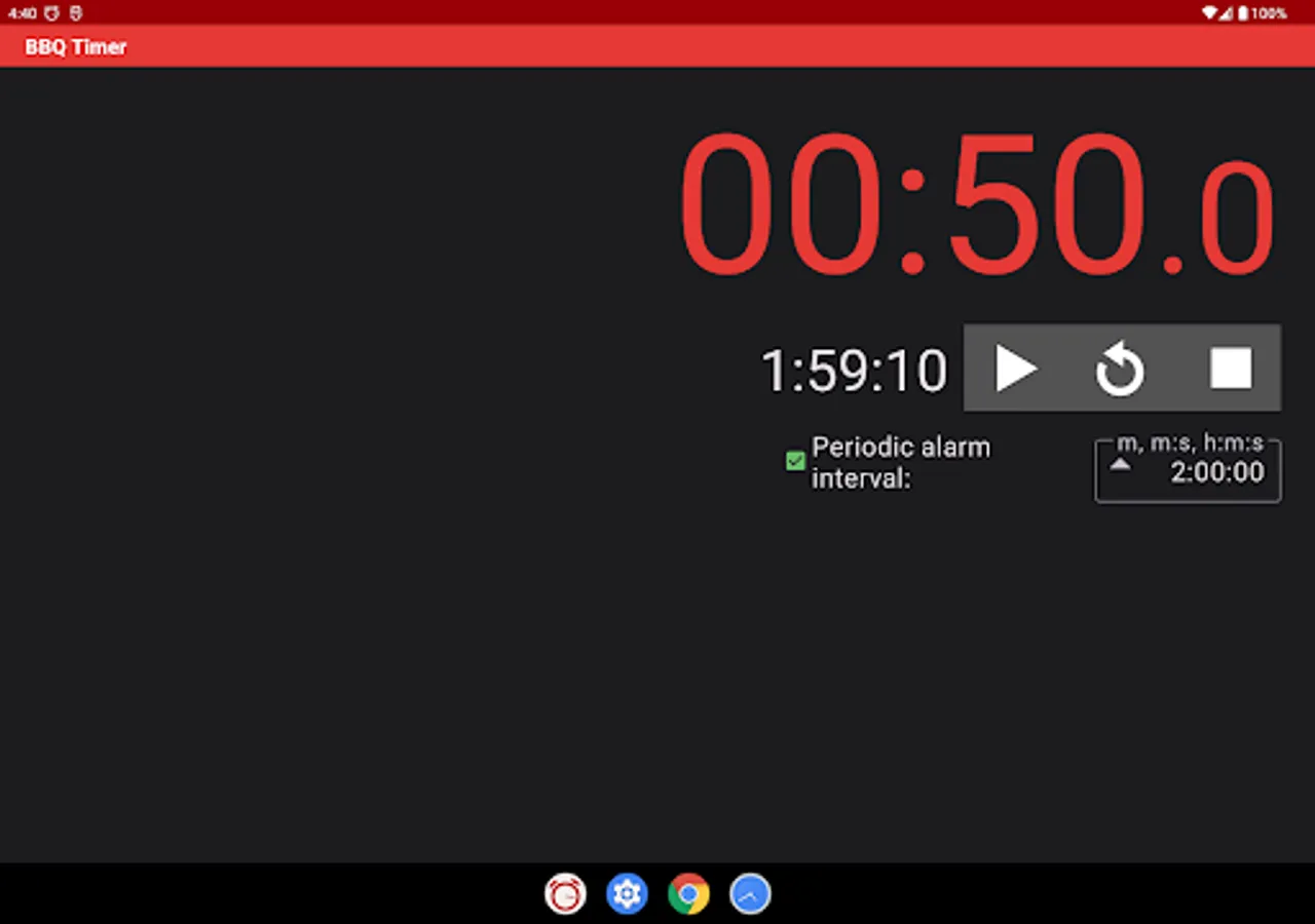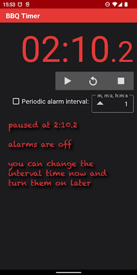 • You can change BBQ Timer’s “Alarm” sound in Settings / Notifications. Don’t pick “None” if you want to hear the interval alarms. To restore the app’s cowbell sound, uninstall and reinstall the app.