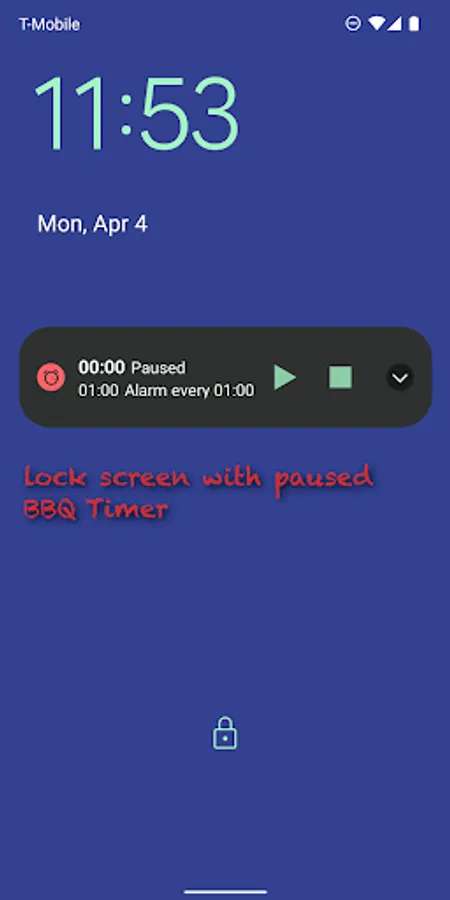 • While BBQ Timer is running or paused, it appears on the lock screen and in the pull-down notification so you can see and control it in those places.