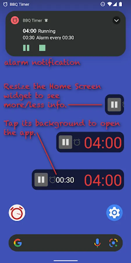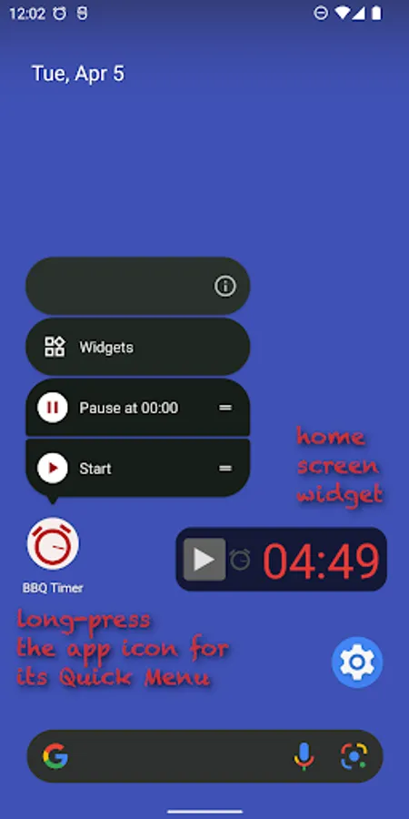 • Add the BBQ Timer widget to the home screen.