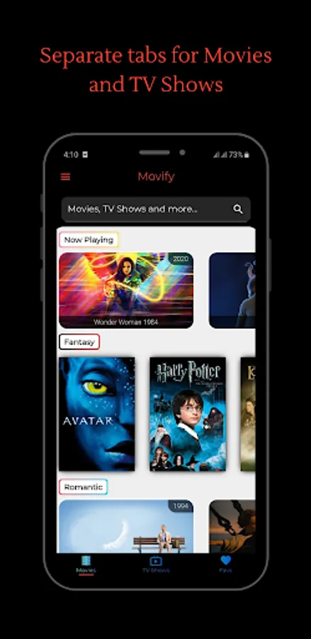 This app is made for searching & saving Movies/TV Shows and their details.It uses The Movie Database(TMDb) Services but is not endorsed or certified by it.