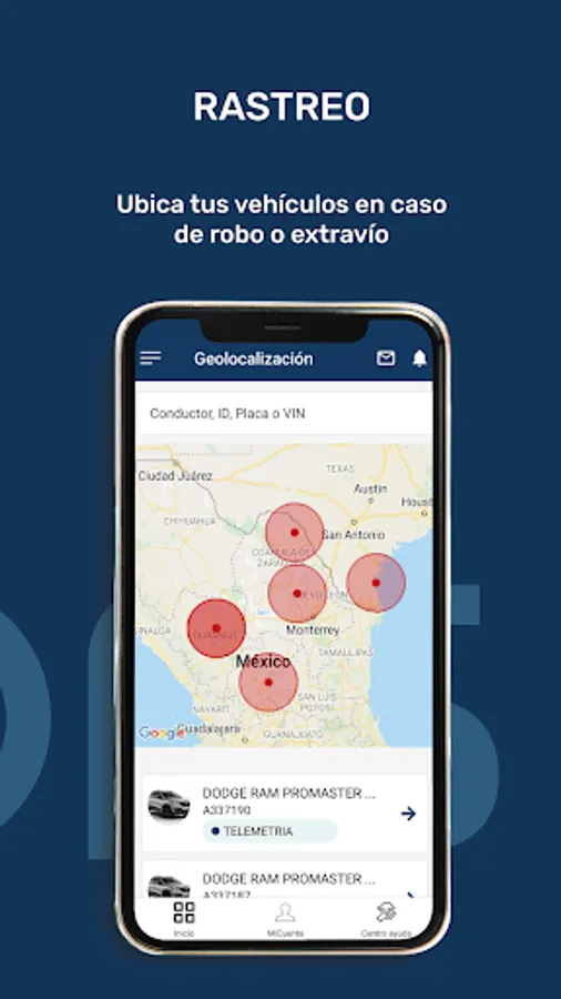 - Consulta de tu(s) vehículo(s) en tiempo real.