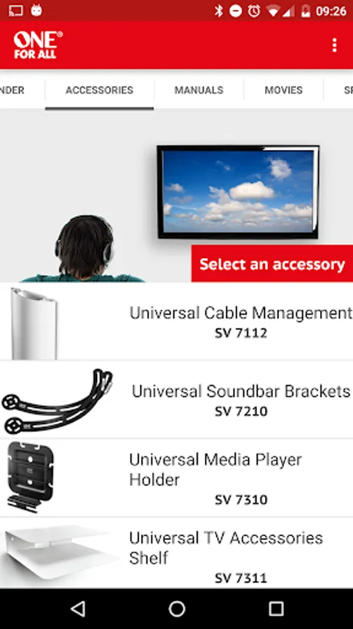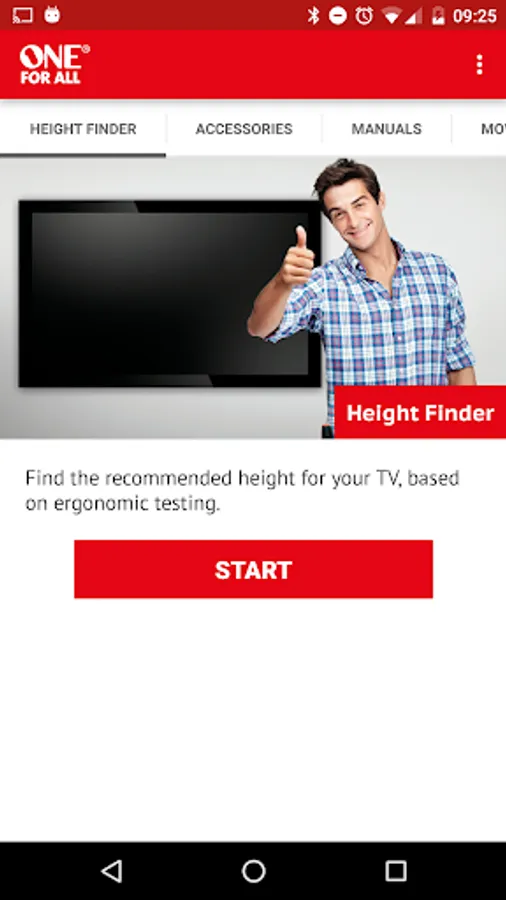 This app provides you with many tools to install your One For All wall mount in the best possible way. One For All offers a wide range of wall mounts, covering all movement types, screen sizes and VESA sizes.