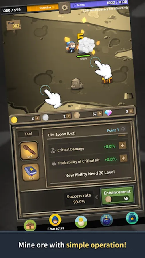 Enhance your skills to speed up character mining and reduce simply repeating the touch!
