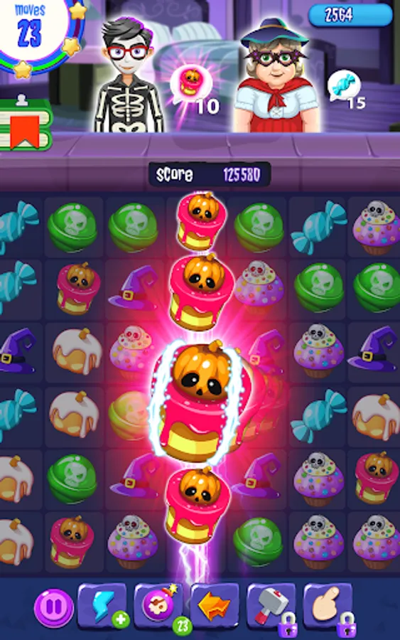 This Allhallowe’en puzzle game offers tons of missions. Each level has a different mission to complete and the difficulty will increase at each level. The main mission here is match 3 candies of the same taste and deliver them to your customers. Your customers are different and they will be wearing some amazing Halloween Costumes. Say happy Halloween to them and deliver their order without mistakes to win each level and go forward in this addictive Halloween witch games. Keep in mind that the gameplay will start out simple, but things will get more and more complicated and challenging.