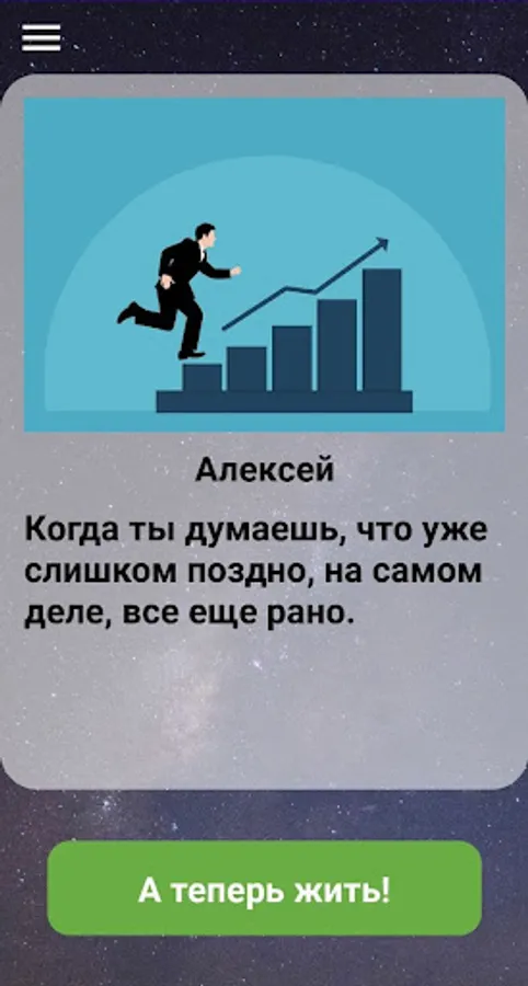 Более того, поставьте таймер, например в то же время что и будильник и приложение поможет вам подняться с кровати для свершения великих дел и невероятных задумок!