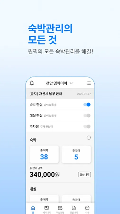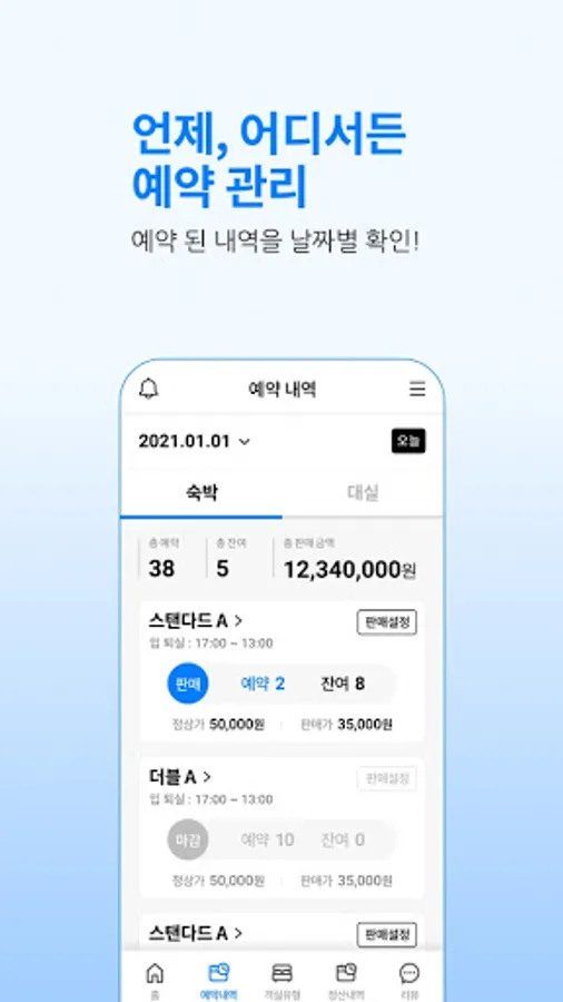 Quickly and easily ‘reservation/sale-room management/settlement at any time