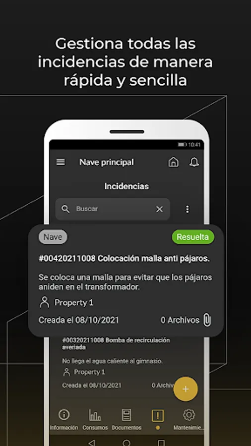 With this app you will have complete information in reference to consumption, documentation, incidents and maintenance related to the properties managed by Montepino.