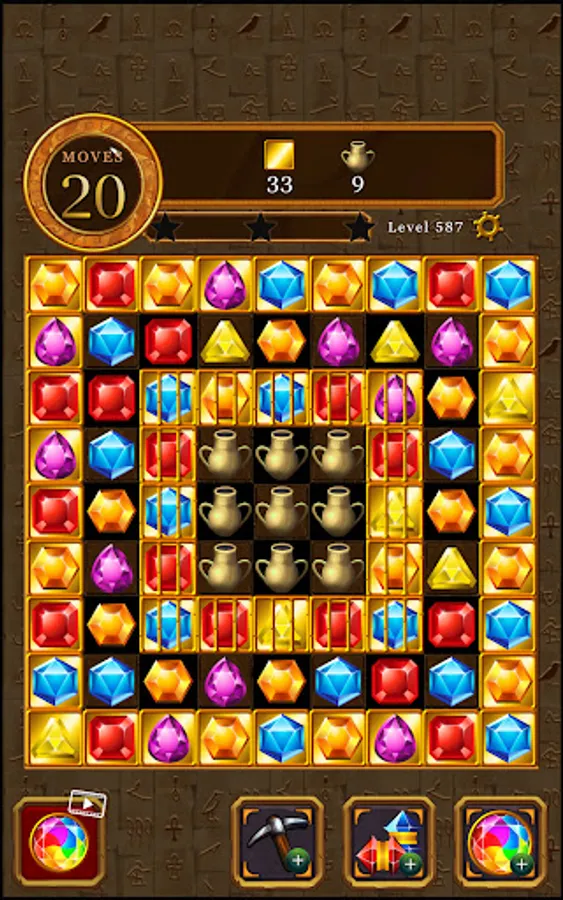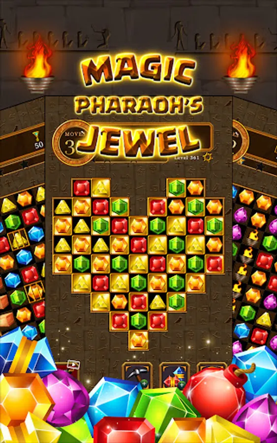 'Pharaoh Magic Jewel' is a classic match 3 puzzle game set in ancient Egypt. Quest into the Pharaoh's tomb deep inside a pyramid in the Nile Country and discover the treasure and riches hidden within. Swap, match, and pop gems and jewels in fun and exciting matching games and puzzles to collect stars and earn the Pharaoh's favor.