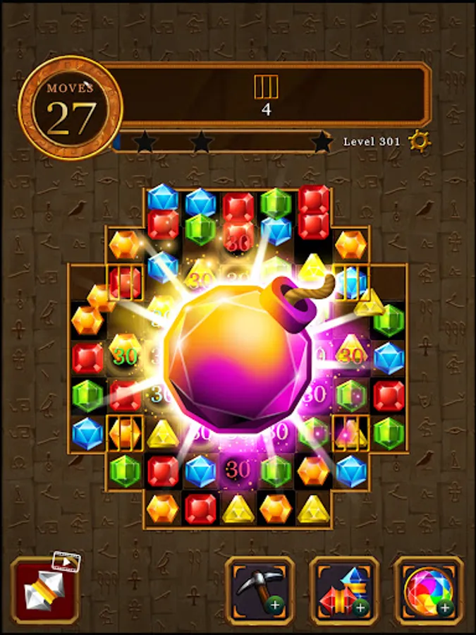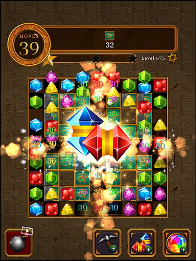 Each of the 100s of puzzle levels has unique and creative obstacles to overcome on your quest to become the best jewel crush explorer in Egypt. Switch jewels, swap gems, and blast away blocks to uncover the secret of the Sphinx and walk away with the treasure of Cleopatra.