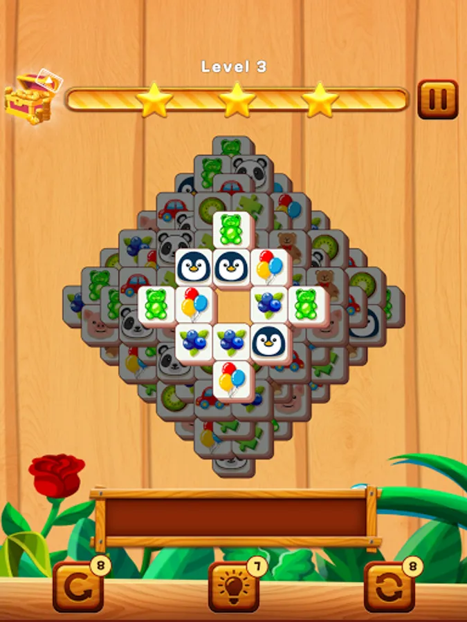 • Find(👀) 3 tiles and tap(👆) to remove them! Train your brain🎓!