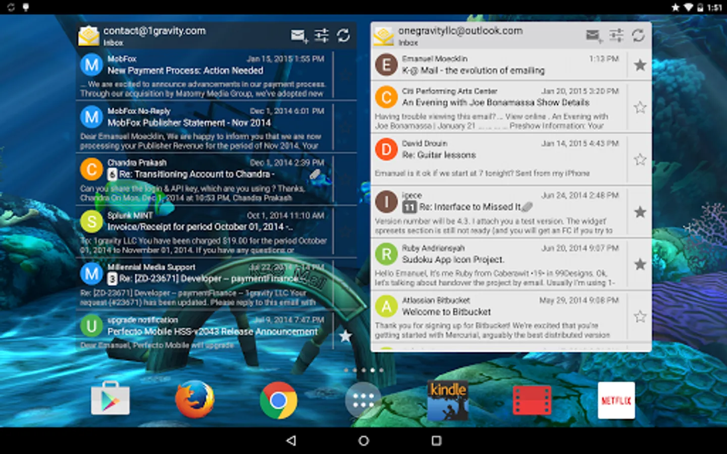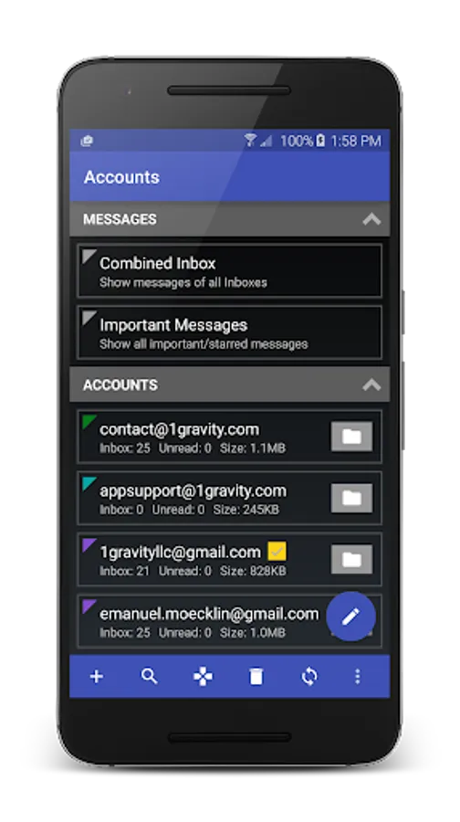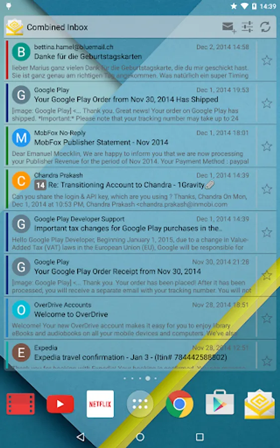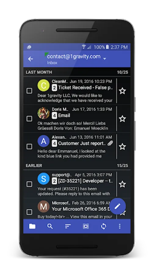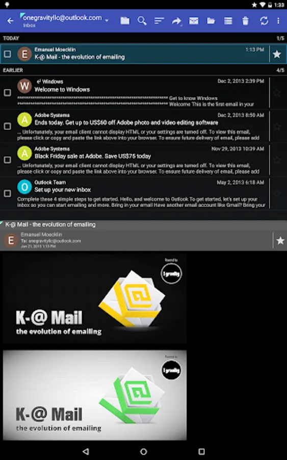K-@ Mail (Kat Mail), the first and only email client for Android that combines a gorgeous graphical design with a great user experience and a powerful email engine “under the hood”.