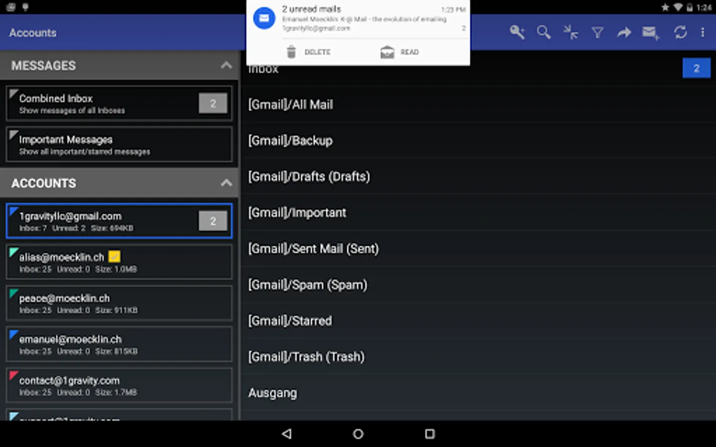 ★ Android Wear notifications (stacked notifications with preview and action buttons for individual mails)