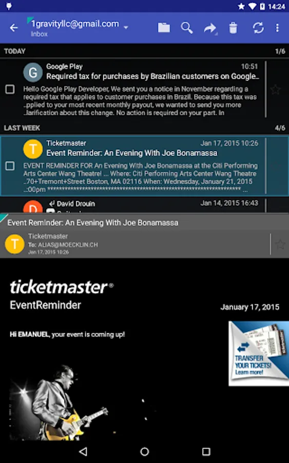 ★ Your social information - activity recognition: used to notify incoming emails using text-to-speech based on the user's activity (walking, driving, running etc.).