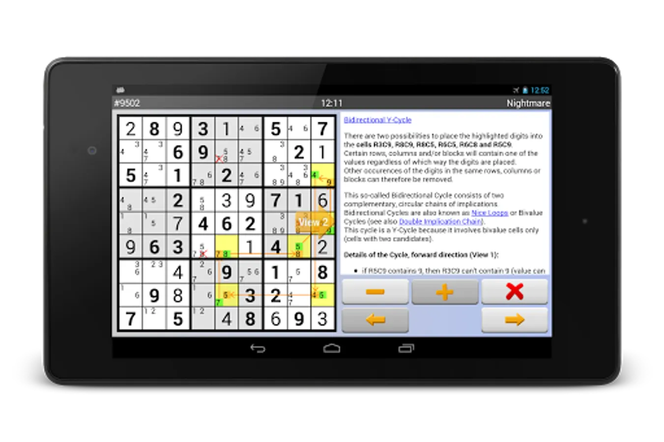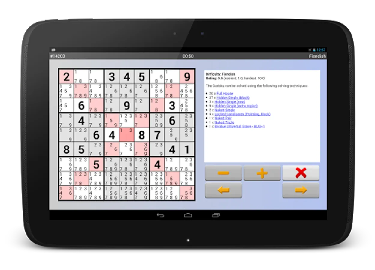 ★ Analysis functionality to rate the difficulty of a Sudoku puzzle and to get a detailed list of required solving techniques
